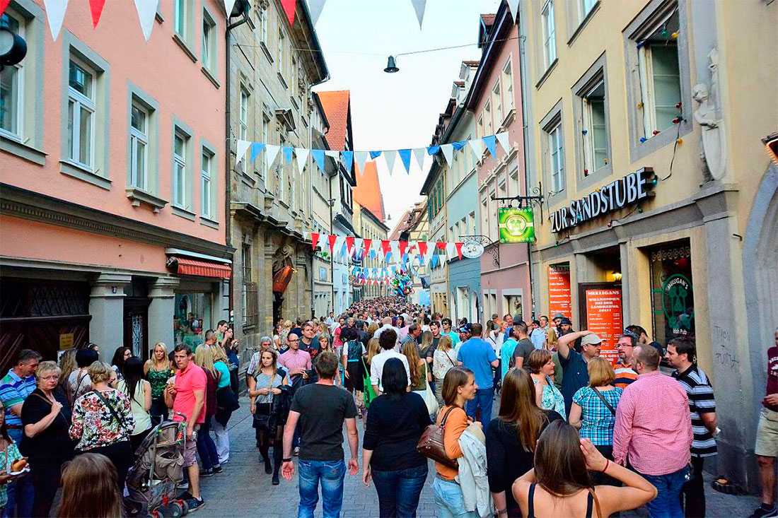 В ходе этого фестиваля люди собираются на узких улочках Старого города у реки, вдоль которых выстроились пивные ларьки, а также в пивных садах, типа того, что находится рядом с таверной Шенкерла.