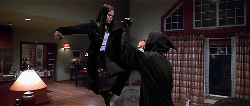 Во время сцены, пародирующей «Матрицу», со стены обрушивается книжная полка, на которой остаётся стоять ваза.