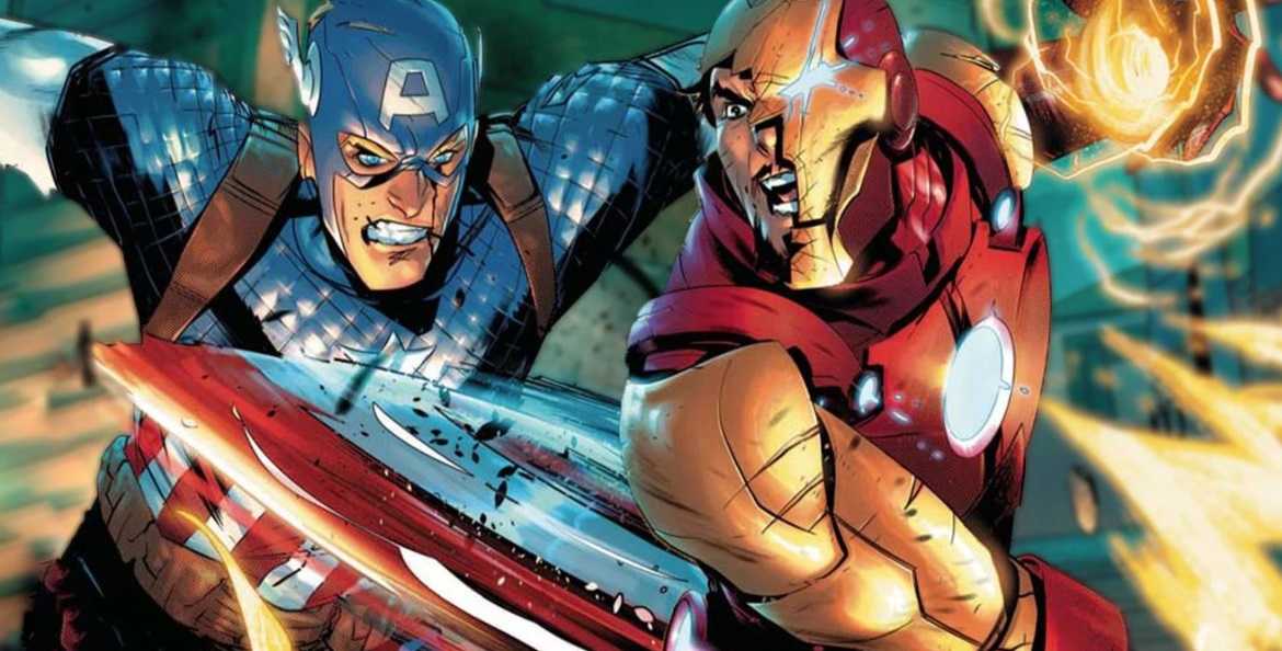 Капитан бросает щит в Железного Человека, который легко уклоняется от диска, но он не рассчитывал на скорость и силу Капитана, когда тот врезался в железный костюм, сбив его с ног. Щит бумерангом летит к своему владельцу. Голубокровный американский герой не ровня Железному Человеку в одиночку, но с его повышенной силой и несокрушимым щитом Кэп пробивает бронированный снаряд.