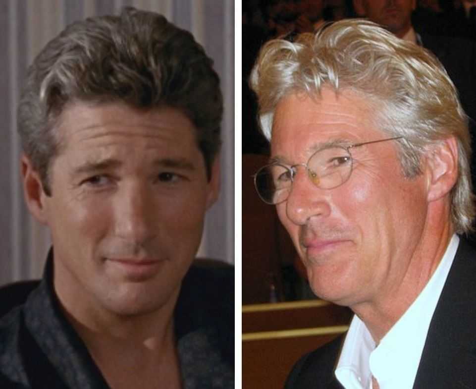 7. Для постера фильма голова Джулии Робертс была присоединена к телу Шелли Мишель с помощью фотошопа. Кроме того, видите, насколько черными стали волосы Гира, хотя изначально они были седыми? Упс!