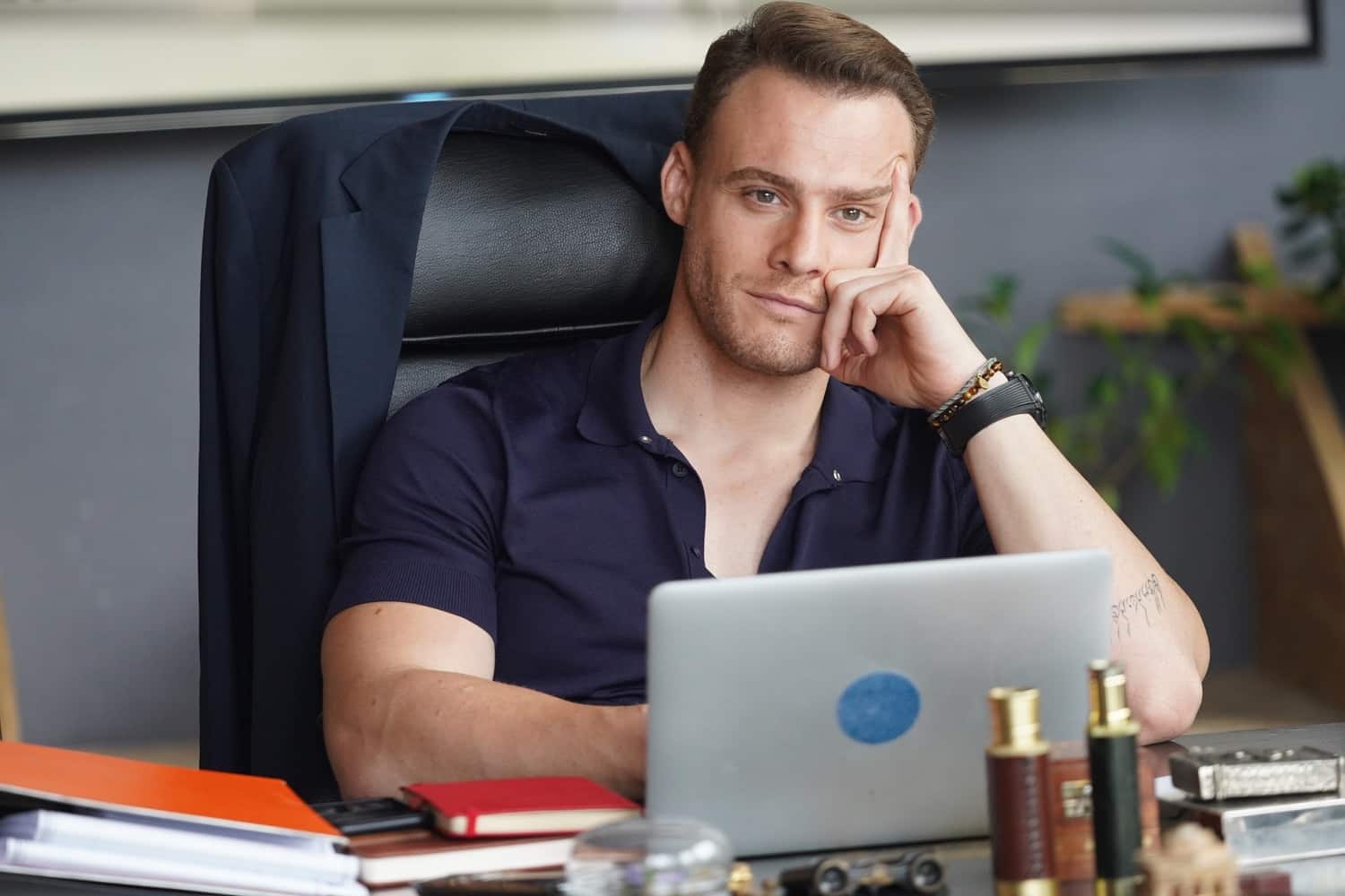 Керем Бюрсин в роли трудоголика Серкана Болата. Кадр из сериала.