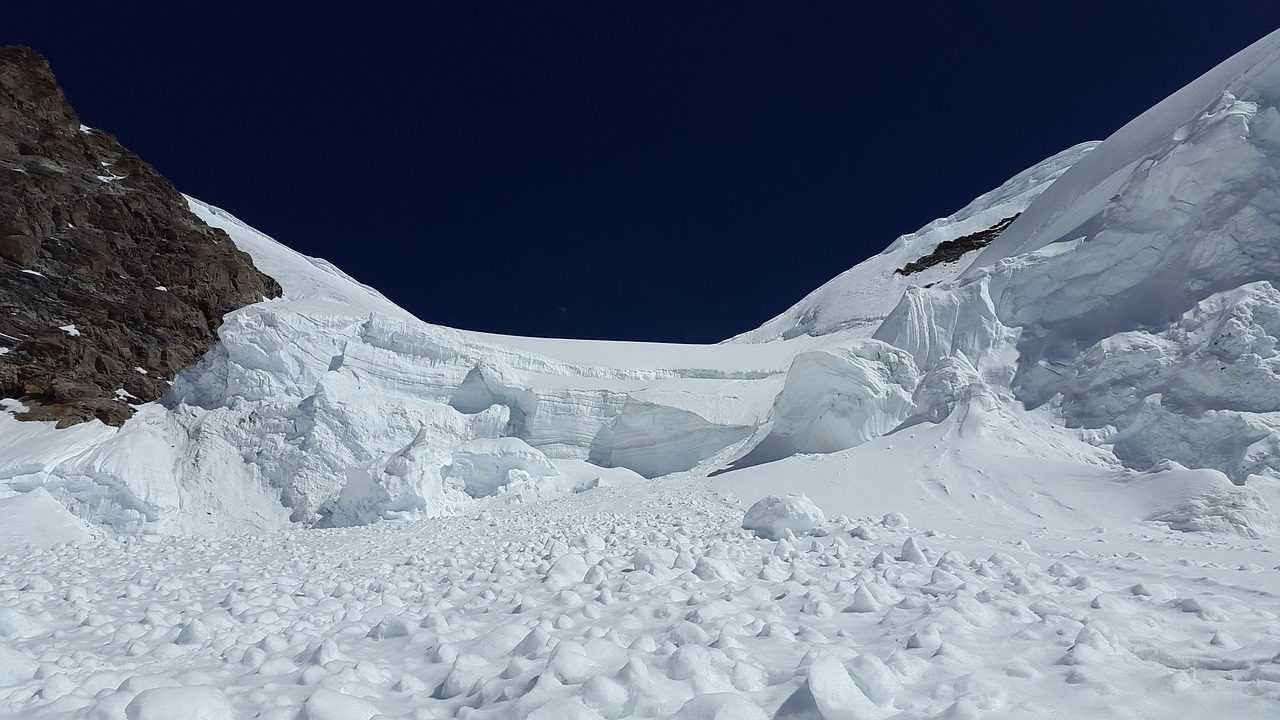 На месте гибели полярников воздвигли высокую гору из ледяных глыб и соорудили крест из лыж.